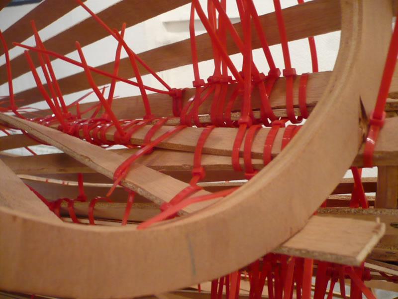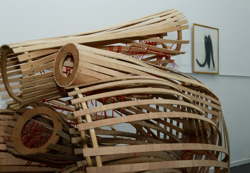 2013 - "Parallèles", Galerie ART'COURSE, Strasbourg bois, liens de serrage, 250 cm x 200 cm approx