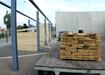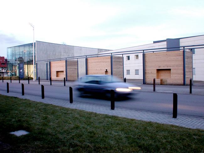 Dressées au bord de la route, trois grandes boîtes assemblées de lattes en bois, viennent épouser les lignes de la structure métallique, en enfilade, d’un grand portique vide. Comme dans ses précédents travaux, Ilana Isehayek construit des volumes, des formes et dialogue avec les espaces, à travers l’accumulation notamment d’une multitude de petites planches en bois, son matériau de prédilection. (...)