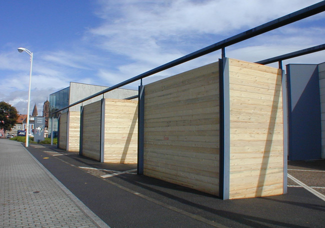 "Les cabanes à Sélestat", d’Ilana Isehayek sont une des propositions de l’édition 2001 de Sélest’art, la biennale d’art contemporain de la Ville de Sélestat (Alsace, France). Elles ont pris place sur le parvis de l’Agence culturelle d’Alsace en septembre 2001. C’est presque naturellement que les "cabanes" sont venues s’emboîter dans le portique métallique qui anime ce lieu de passage. Les planches de pin brutes utilisées par l’artiste ont été glissées dans les éléments existants, formant trois cabanes à ciel ouvert. (...)